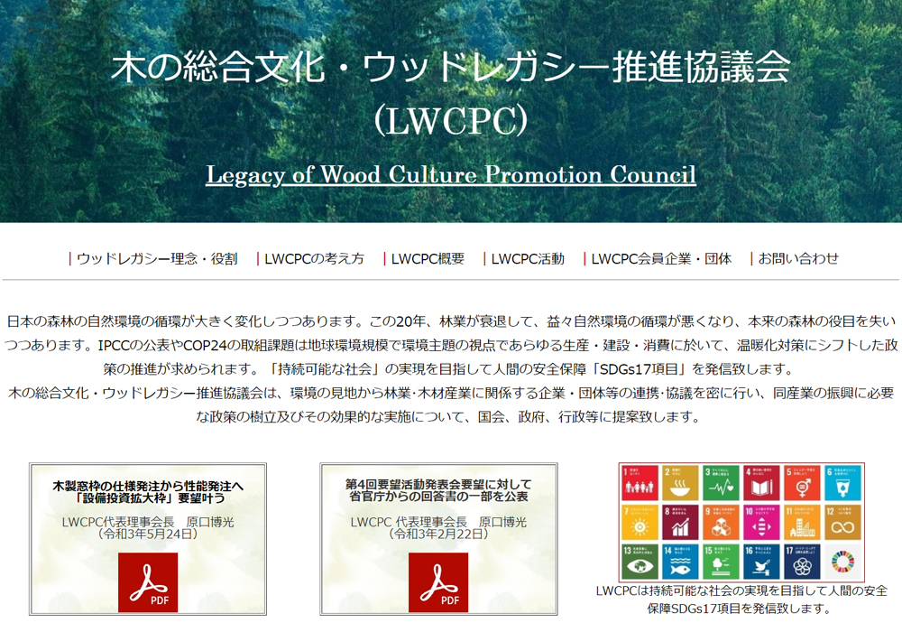 (一社)木の総合文化・ウッドレガシー推進協議会 として「木の総合文化(ウッドレガシー)を推進する議員連盟」に対し、日合商要望書(陳情)を毎年提出しています。