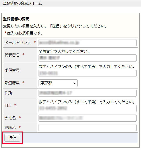 メールアドレス等の変更をご希望の方は【 マイページ 】のリンクをクリックし、変更内容を入力して送信ボタンを押して下さい。