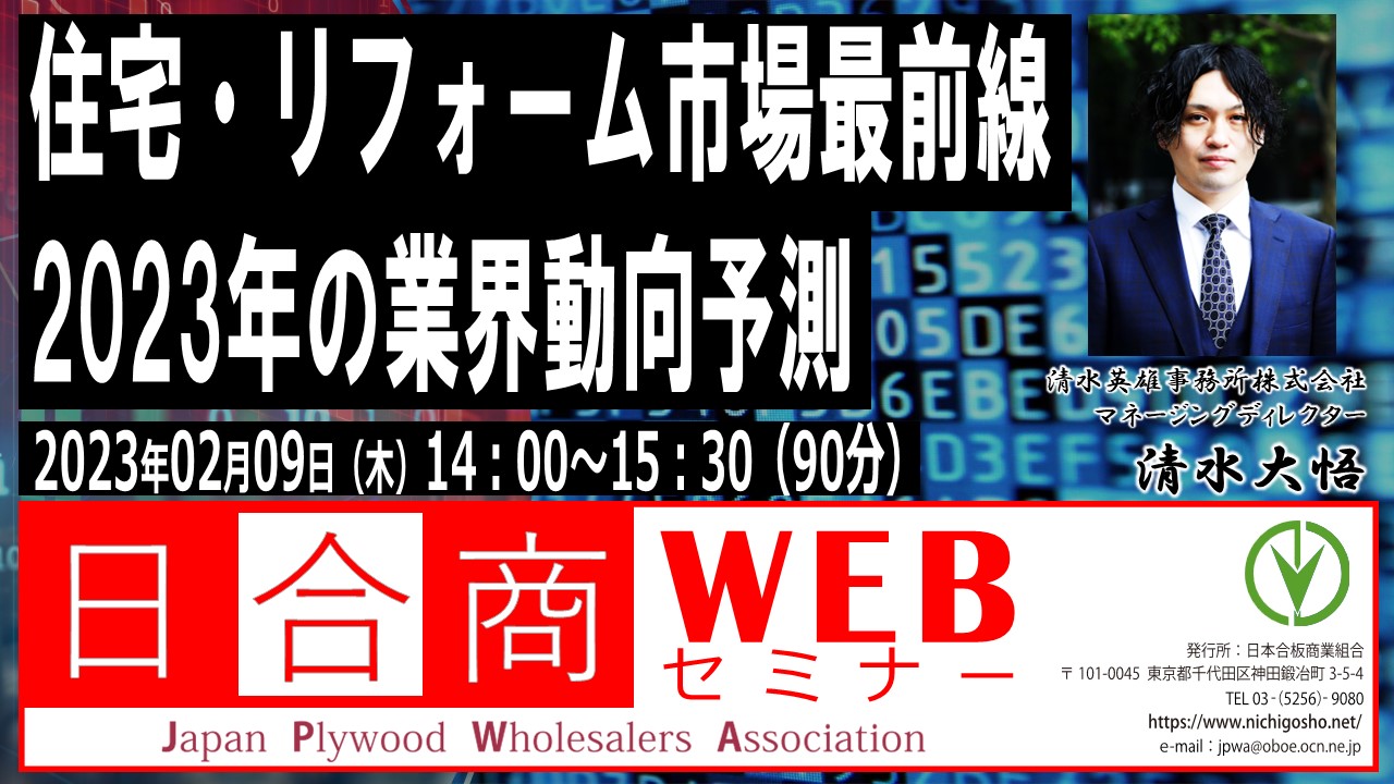 2023年の業界動向は、2030年までの業界全体の流れが決まる、まさに転換のタイミングにあたります。人口動態の大きな変化・消費動向の変容・税制へのテコ入れ・脱炭素社会に向けた各自治体の動きと予算の関連性・新築住宅の動向・リフォーム業界の動向・コスト高騰の対策・省エネ基準適合義務化に向けた各ハウスメーカーの動向・職人不足と人材の都市部集中化課題・・等々