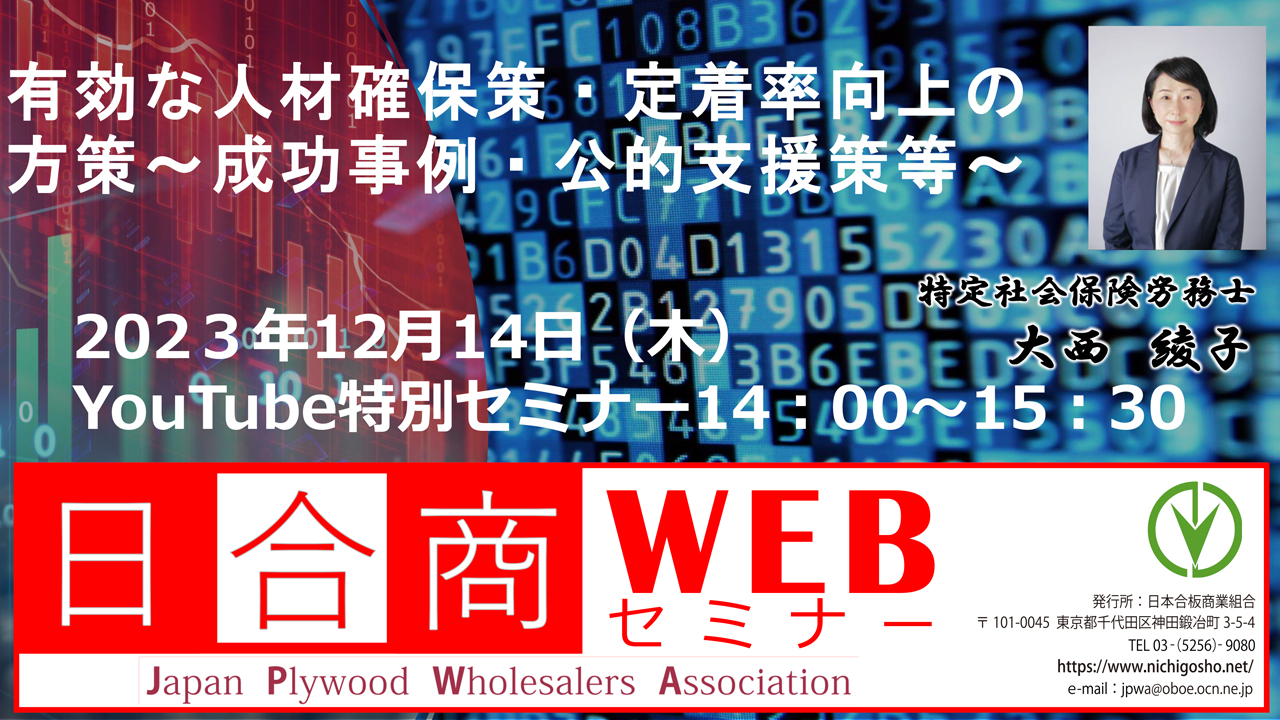 【2023年度 特別セミナー】有効な人材確保策・定着率向上の方策 ~成功事例・公的支援策等~