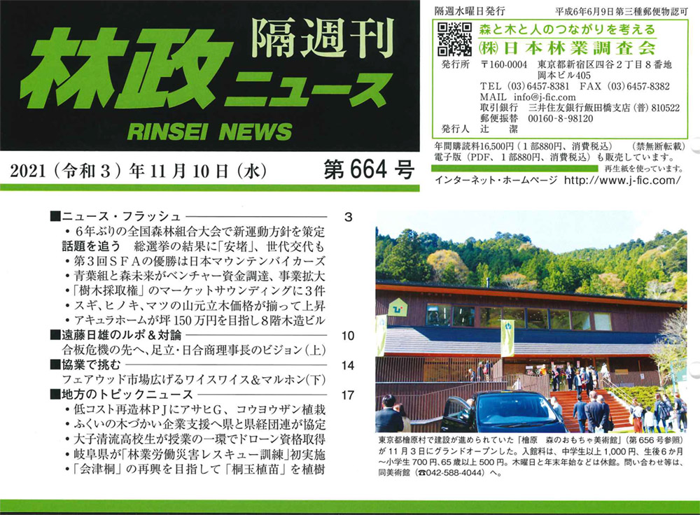 林政ニュースに足立理事長のインタビュー「合板危機の先へ、足立・日合商理事長のビジョン(上)」が掲載されました
